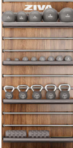 Kettlebell ZIVA Performance wykonano z jednolitej stali i powłoką gumową, minimalizującą hałas. Z kolei designerskie gryfy olimpijskie ucieszą z pewnością zwolenników treningów z wolnym ciężarami.