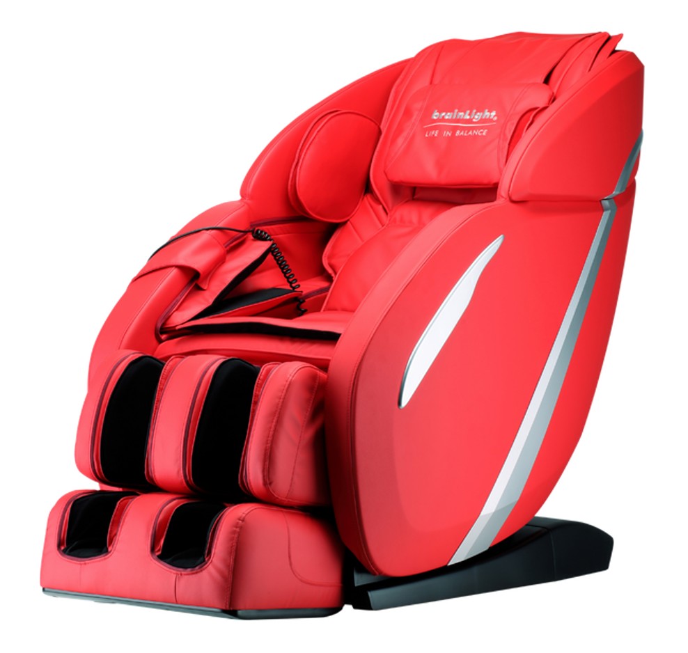 | Wyposażenie | Panel sterowania z przejrzystym wyświetlaczem LCD, przewód połączeniowy do urządzenia brainLight Touch Synchro complete lub relaxTower, torba na akcesoria (na panel sterowania i okulary do wizualizacji brainLight – mocowana do prawego boku fotela za pomocą rzepu, mata siedziska może być złożona jako dodatkowa poduszka pod głowę lub całkowicie usunięta w celu uzyskania intensywniejszego masażu, dodatkowe wkładki do stóp – mogą być użyte w przypadku chęci złagodzenia masażu podeszew, tapicerka wykonana z ekoskóry certyfikowanej OEKO-Tex 100 |